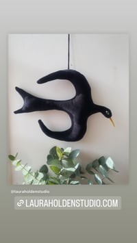 Hanging bird in flight made in beautiful matt cotton velvet with hand appliqué detail.