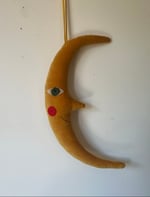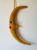 Long gold vintage velvet sickle moon, hand stitched with wool felt detail.